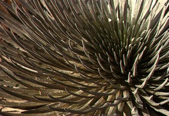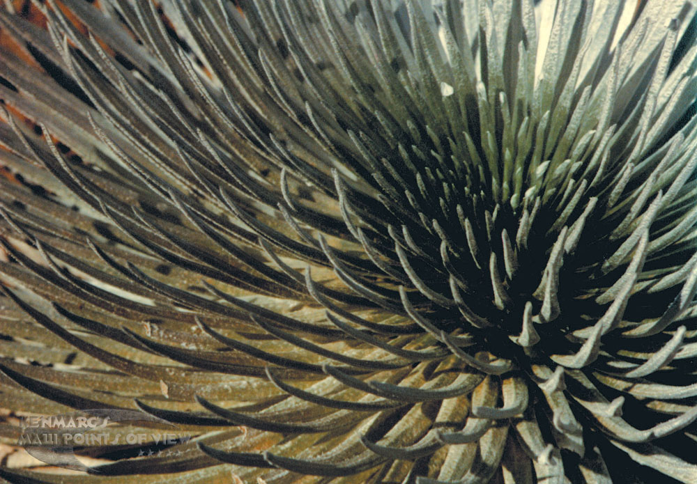 The fuzzy silver blades of the endangered Silversword. CLICK HERE TO DOWNLOAD A 1000x695 (205Kb) PIXEL ENLARGEMENTWHICH YOU CAN SAVE TO YOUR DESKTOP AS WALLPAPER.